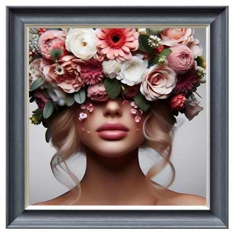 Velvet Print Framed Artwork - Flower Face Lady Collection