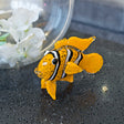 This colourful glass ornament depicts a bright orange clown fish with prominent black and white stripes. The flowing shape and choice of colours are a stunning example of blown glass craftsmanship at its best.