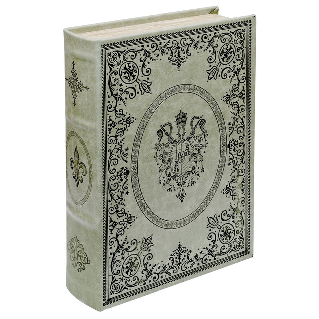 Add a touch of vintage elegance and hidden functionality to your home with the Verdigris Crest Storage Book Box.