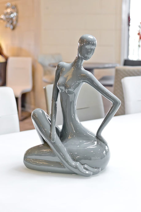 Grey Ceramic Lady Figurine