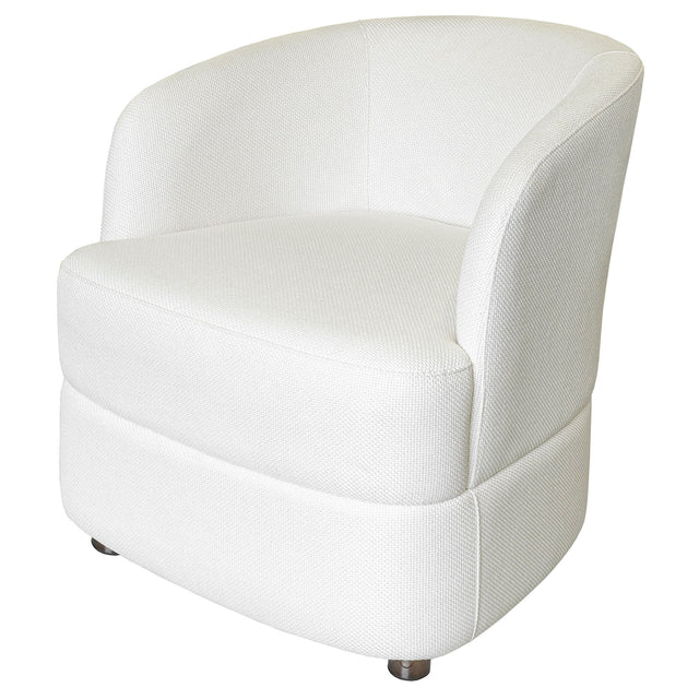 The chair’s compact yet comfortable proportions make it a practical choice for both smaller spaces and larger layouts, where it can be used as an accent piece or paired with other seating for a cohesive look. Its clean lines and neutral palette allow it to complement a wide variety of décor styles, from modern minimalism to more traditional interiors.