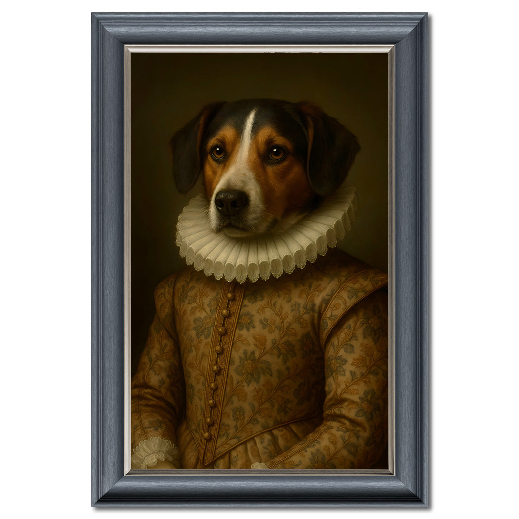 The Regal Beasts Collection, velvet print artwork in an 115 x 75cm dark grey wood effect frame with a gold insert. Choose from a collection of velvet printed framed artwork in my different designs.